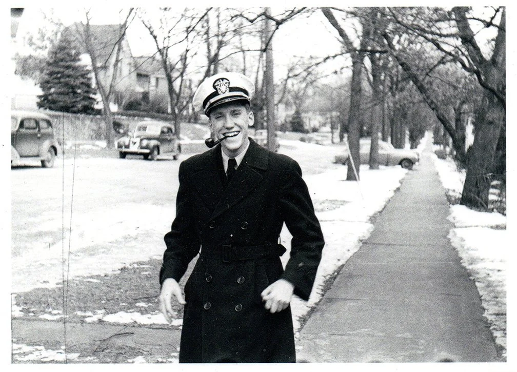 I have had this image of my father, heading into the Navy during WWII, on my desk of late. It was given me by my dear cousins, with other relics I had not seen before. I look at that young face, a jaunty and shining face in the moment, and I think on what came after. I think of what is happening now, of the storms of grief and horror that beset the world, ever and again.